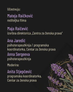 Nakon uspješnih projekcija širom Crne Gore, film Lavanda nastavlja svoj put i otvara prostor za razgovor, razumijevanje i podršku, ovoga puta u okviru posebne večeri posvećene dijalogu i zajednici.