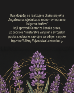 Događaj se realizuje u okviru projekta „Angažovana zajednica za rodno-ravnopravno i sigurno društvo“, koji sprovodi Centar za ženska prava.