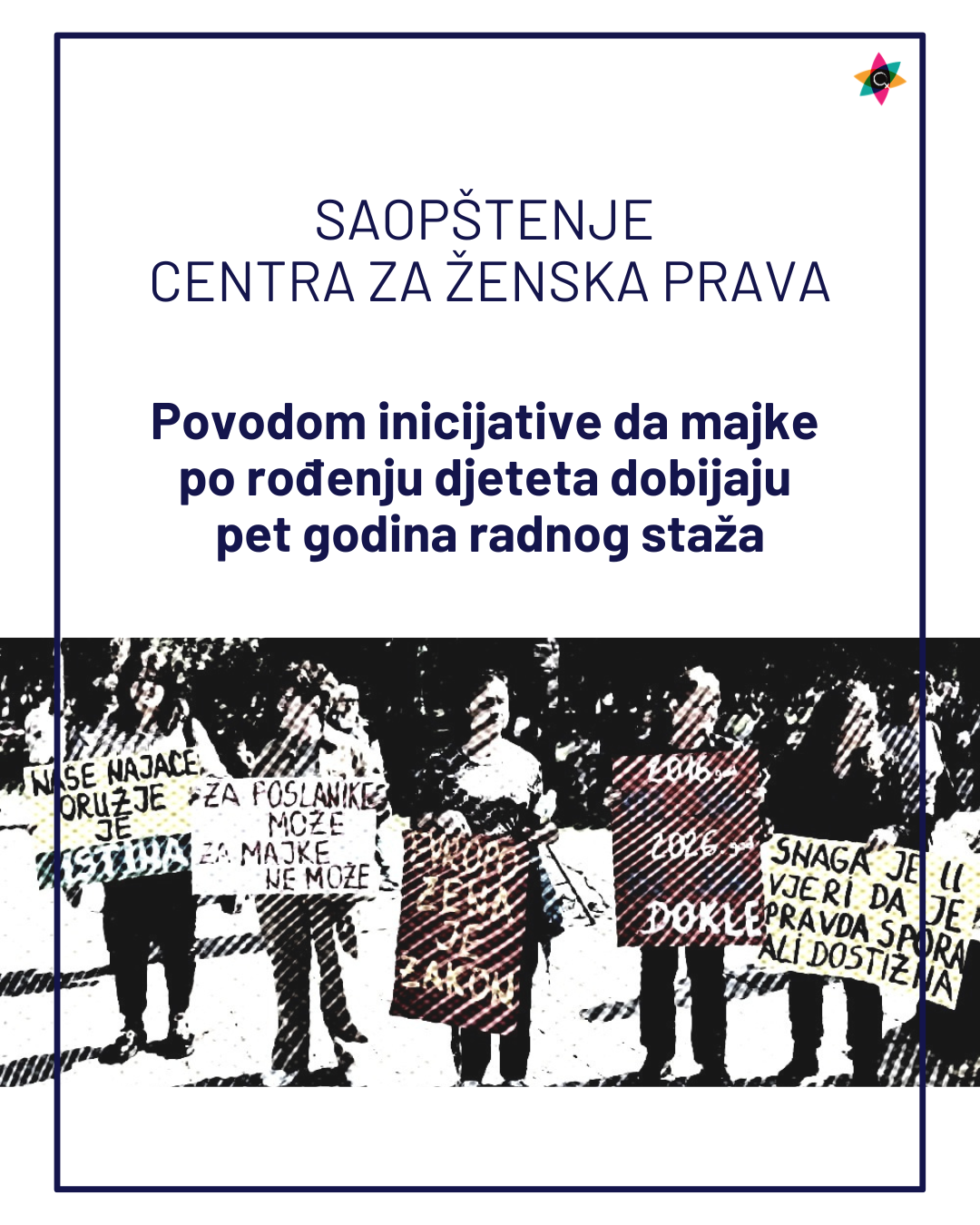 SAOPŠTENJE CENTRA ZA ŽENSKA PRAVA POVODOM INICIJATIVE DA MAJKE PO ROĐENJU DJETETA DOBIJAJU PET GODINA RADNOG STAŽA March 19, 2026