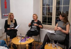 Gošće panela bile su Tanja Ignjatović iz Autonomnog ženskog centra i Ali Hendy iz Ministarstva vanjskih poslova Ujedinjenog Kraljevstva, a razgovor je moderirala Ana Jaredić iz Centra za ženska prava.