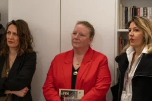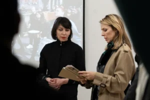O konceptu izložbe, procesu kreiranja vizuelnog identiteta osmomartovskih marševa i društvenom kontekstu protesta govorile su Maja Raičević, izvršna direktorica „Centra za ženska prava” i Tanja Markuš, slikarka i programska koordinatorka CŽP, koja je ujedno i autorka izložbe.