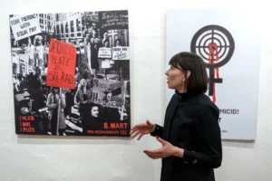 U utorak, 31. marta, u Sopstvenoj sobi, održano je vođenje kroz izložbu 8. Mart 2016 – 2026: Vizuelni jezik otpora”.